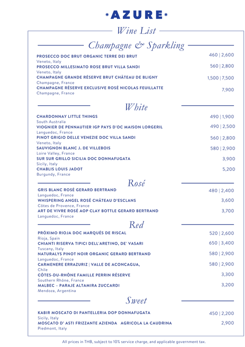 丰富的饮品菜单包括泰式鸡尾酒和无酒精鸡尾酒以及各类的葡萄酒单。 营业时间:上午 11:00 - 晚上 10:00
