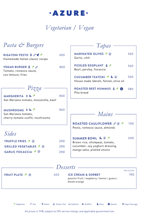 海滨 Azure 地中海餐厅每天营业,提供池畔休闲餐点和全套酒吧服务。 菜单选择包括正宗的意大利比萨、当地鱼市的“当日渔获”和开放式厨房点菜烹制的多汁澳大利亚牛排。