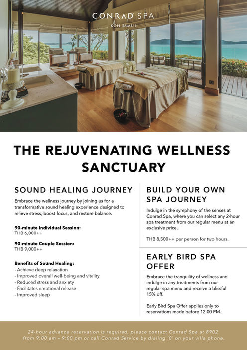 Indulge in luxury at Conrad Spa Koh Samui with exclusive offers blending ancient healing with modern indulgence, all designed to rejuvenate your mind, body, and soul amidst serene views.